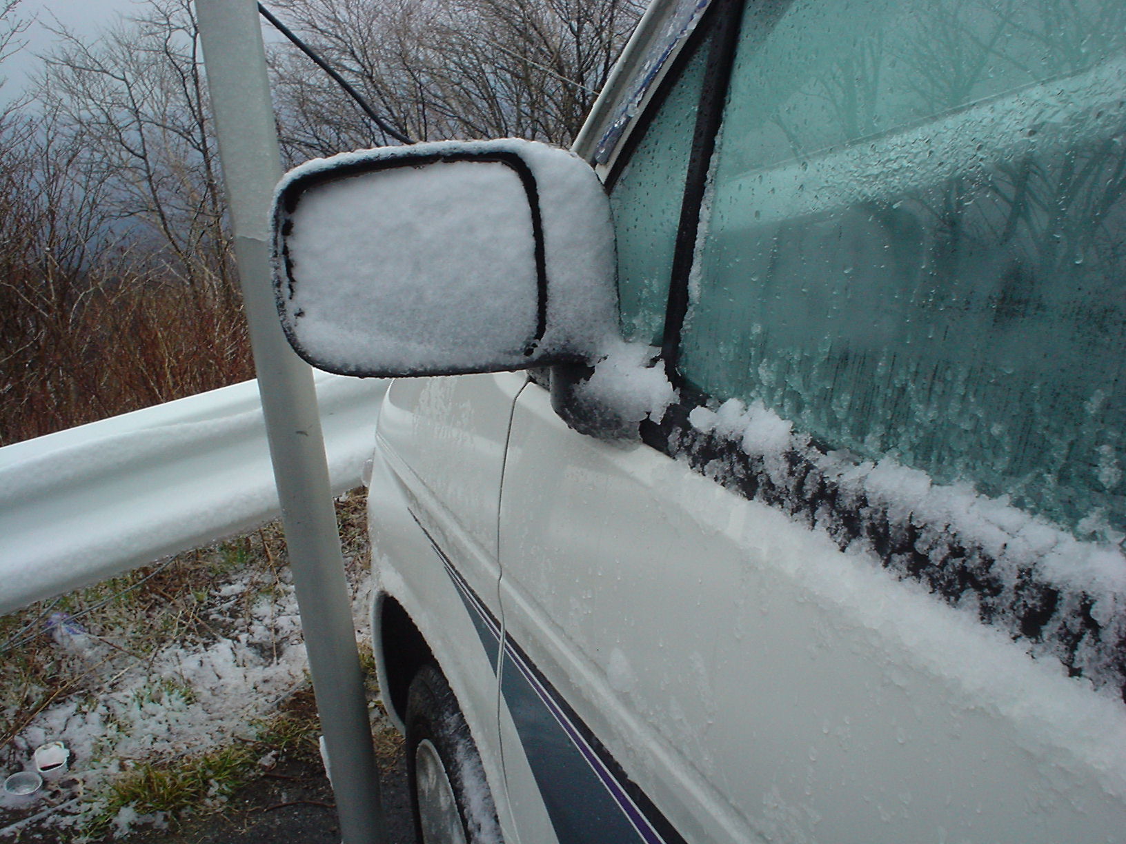 そのうち、雨の代わりにコロコロ音がして、アラレ状態のものが降って来た。その後は、みぞれ状態の猛吹雪で、外は真っ白。